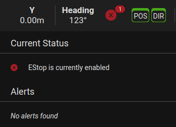To check if the Navbar icon is functioning, trigger the UGV's motion stop and check to see if it has turned to a red icon. Clicking the icon will bring up the status information as well as any recent messages (see below).
