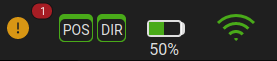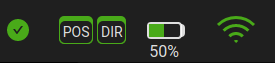 Each time the UGV has been powered up (or moved from a GPS-denied environment to a GPS-available environment), let the UGV sit in this position for 2 minutes to acquire an RTK GPS fix. The POS (position) and DIR (heading) GPS status indicators on the UI should be green: .